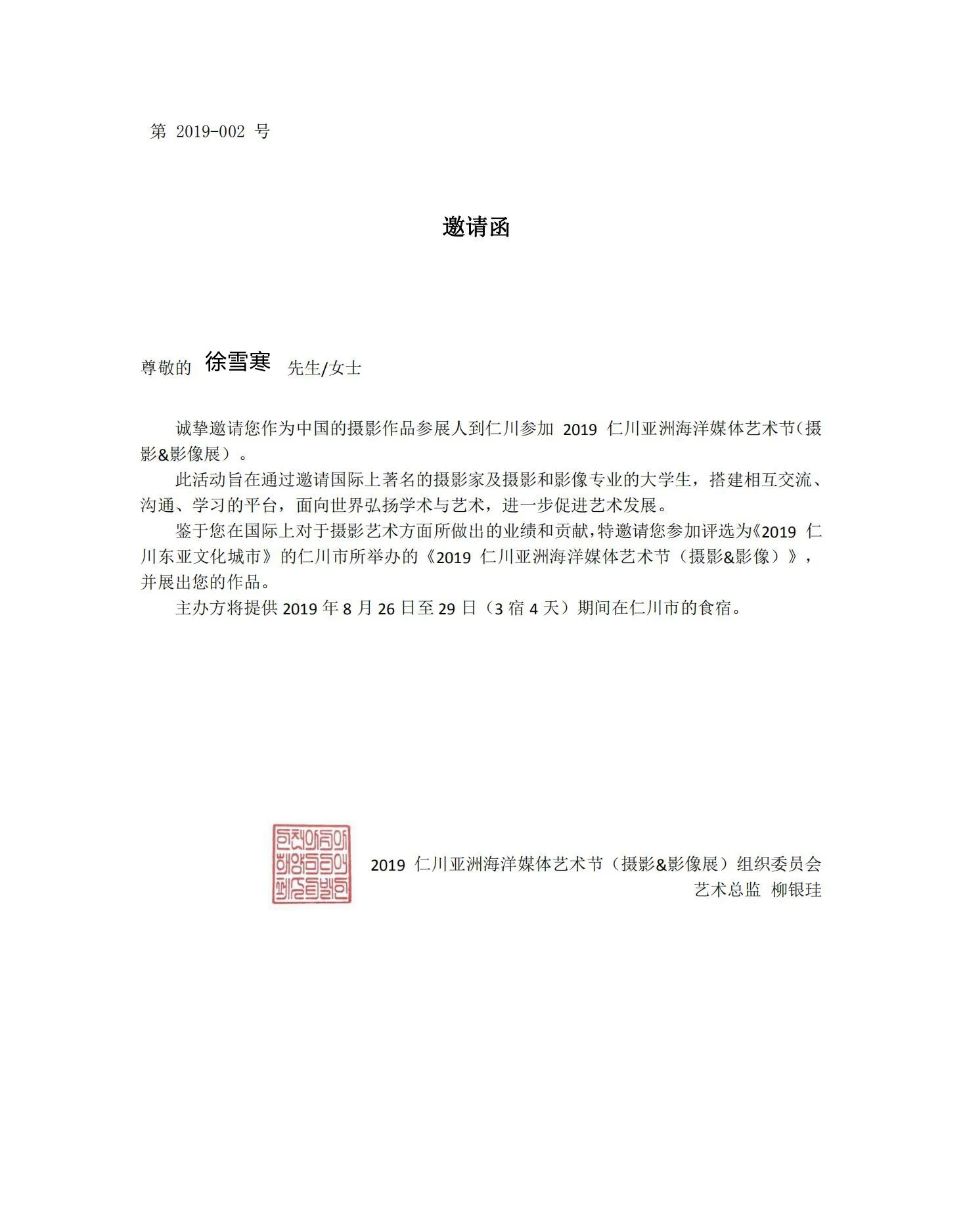 In August 2019, Chinese humanist photographer Hans Xu (Xu Xuehan) was invited to participate in the “2019 Asia Marine Media Arts Festival – Incheon East Asia Cultural City International Image and Photography Art Exhibition” held in Incheon, South Korea. The festival brought together outstanding visual and photographic works from across Asia, aiming to foster cross-border exchange and cooperation in marine culture and visual arts.